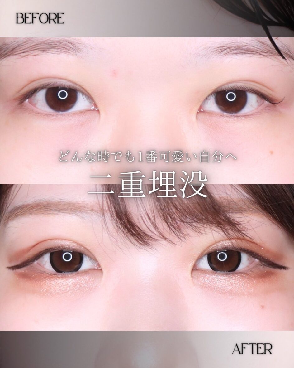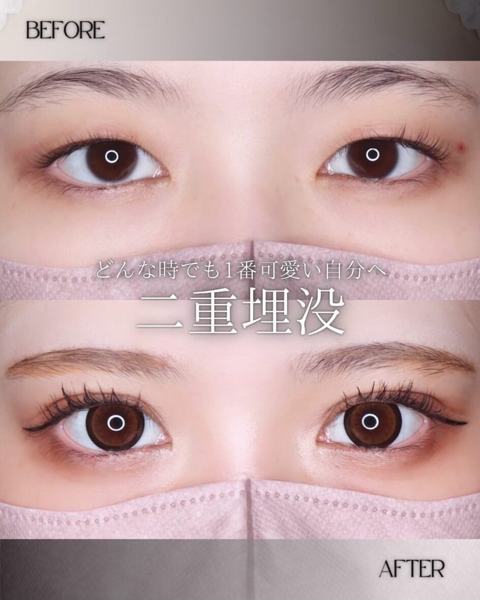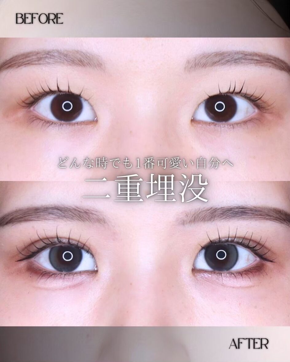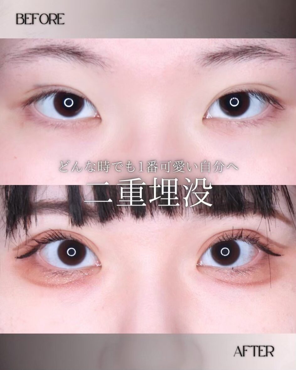二重埋没法は、まぶたの皮膚を医療用の糸で留めて、自然な二重ラインを作る施術です。切開を伴わず、ダウンタイムが短いため、初めての二重整形に適しています。