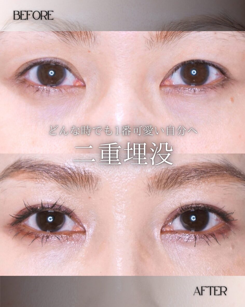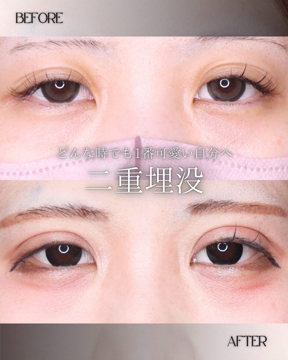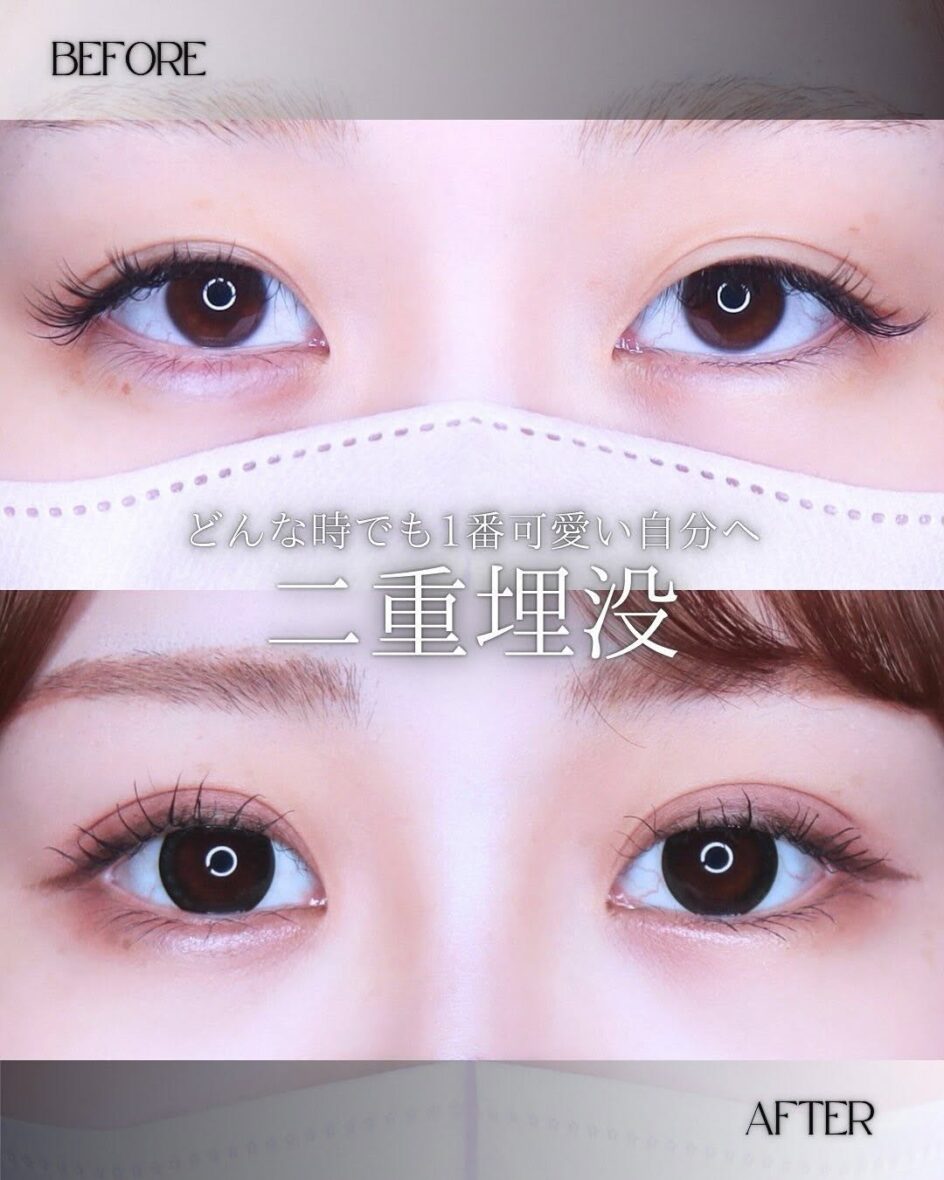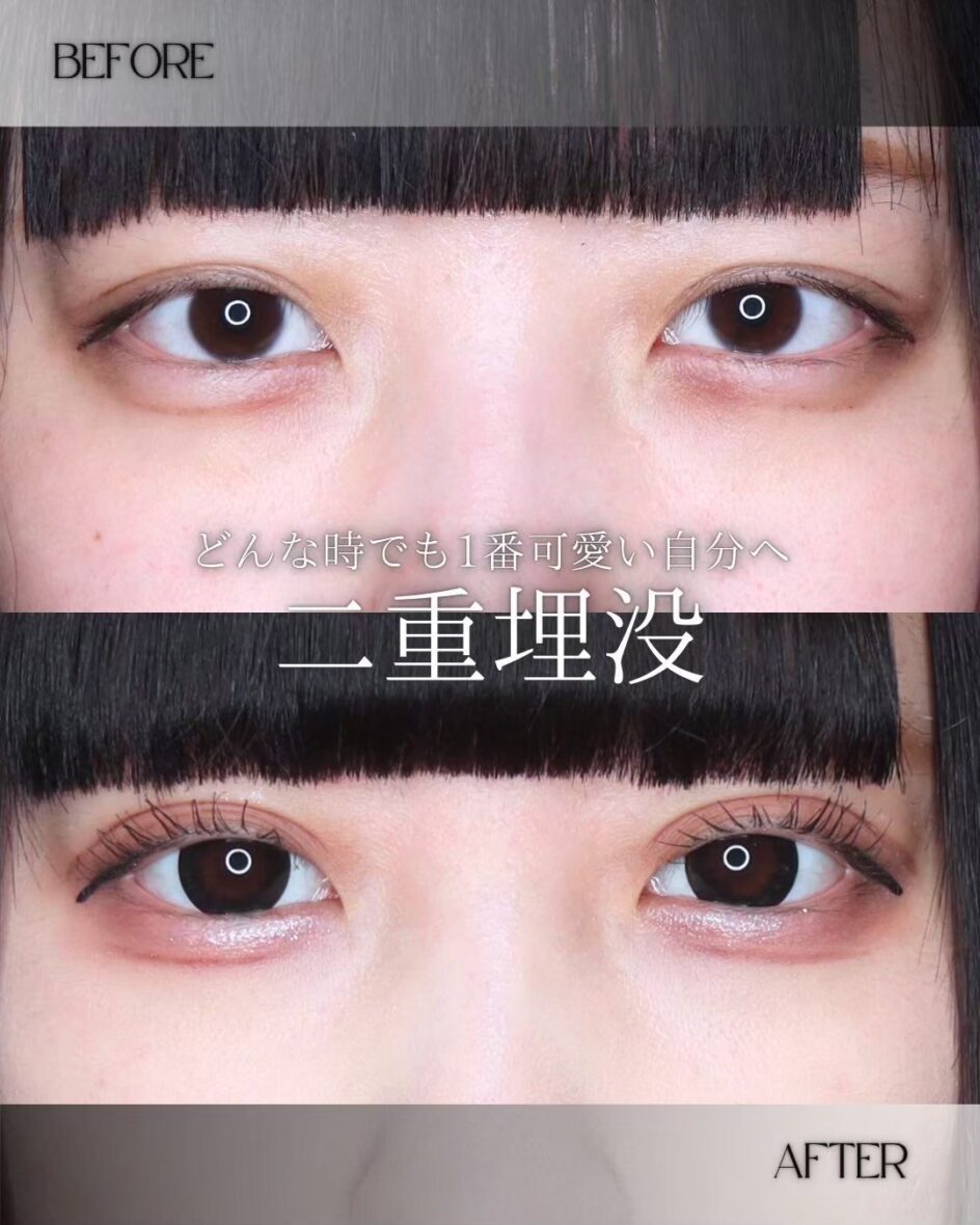 二重埋没法は、まぶたの皮膚を医療用の糸で留めて、自然な二重ラインを作る施術です。切開を伴わず、ダウンタイムが短いため、初めての二重整形に適しています。