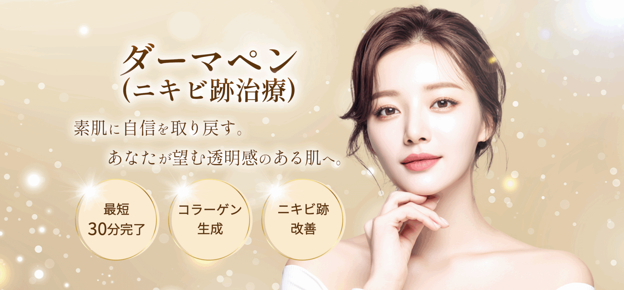 医療用の微細な針(ダーマペン)を用いて、肌に極小の穴を開けることで、自己修復機能を活性化させます。施術後に美容成分を導入し、肌のターンオーバーを促進します。