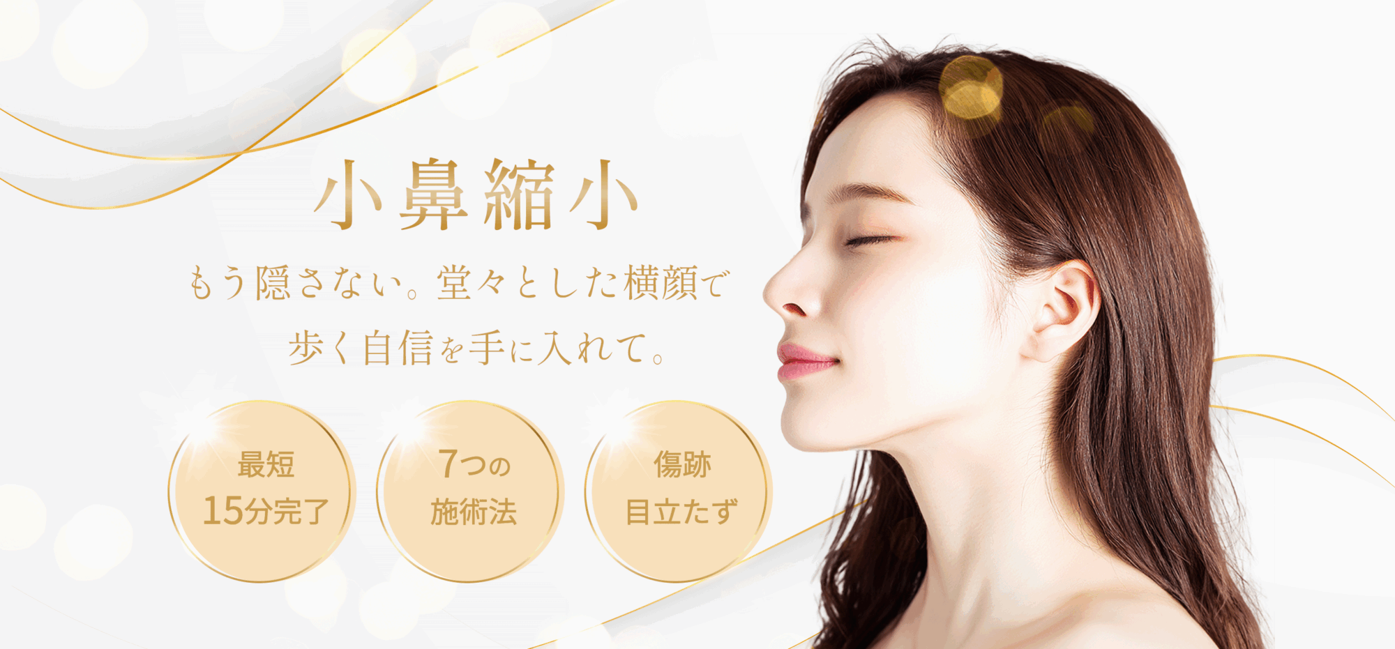 小鼻縮小は、小鼻の広がりや鼻の横幅を調整し、バランスの取れた鼻の形に整える施術です。切らずに手軽にできる施術から、半永久的な変化を加えられる手術まで、さまざまな方法があります。