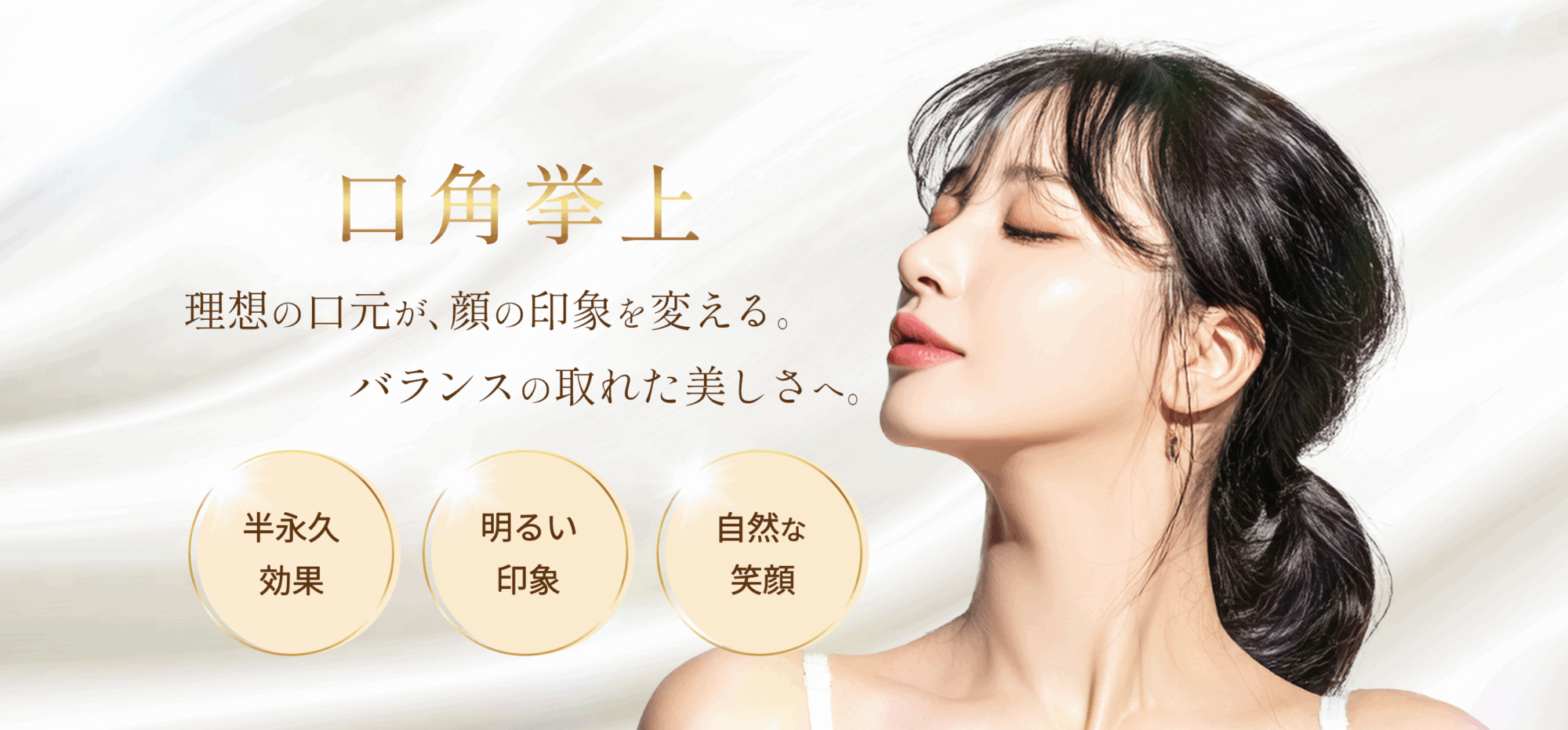 口角を自然に引き上げ、明るく若々しい印象を作る施術。