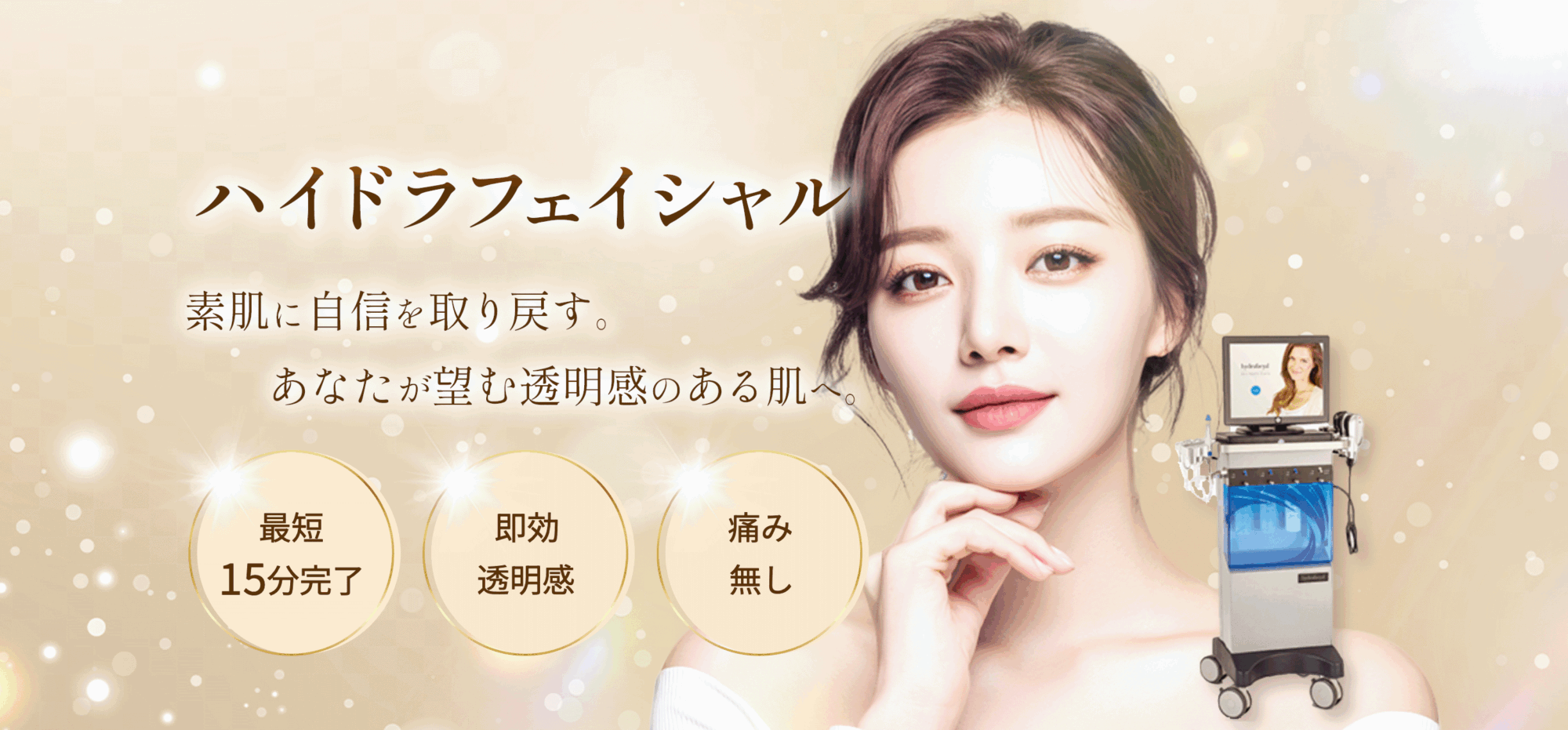 ハイドラフェイシャルは、最新の水流・吸引技術で肌の汚れを除去しながら美容成分を導入できるトリートメントです。